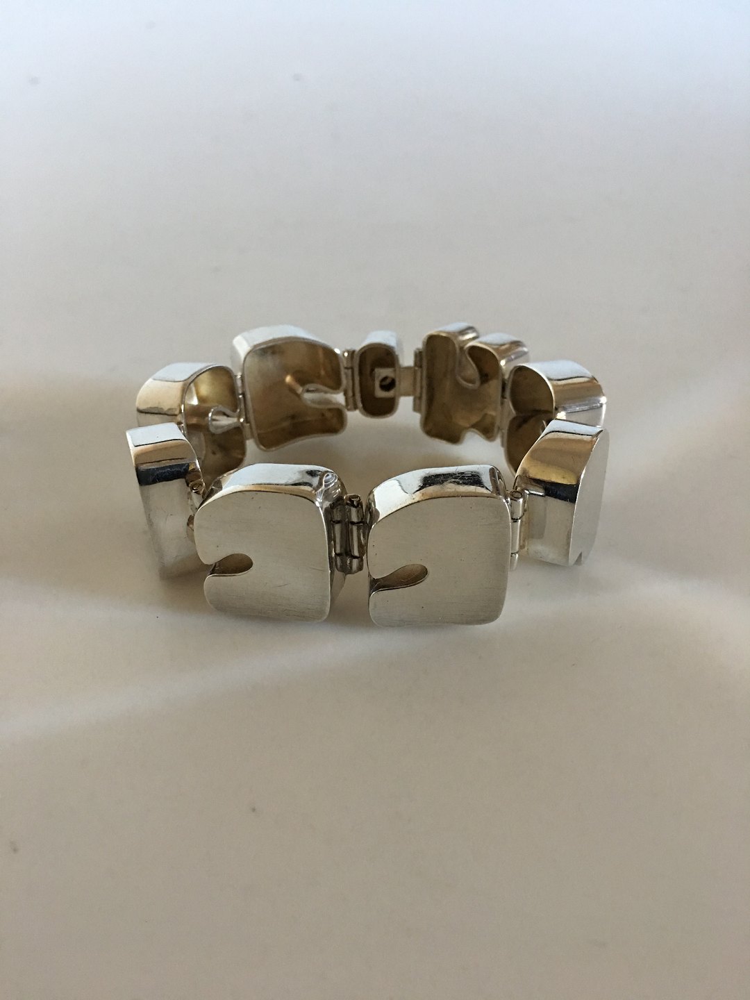 Hans Hansen Sterling Silver Modernist Bracelet with Number Links. Measures 19 cm x 2.3 cm. Weighs 90.3 g / 3.19 oz.