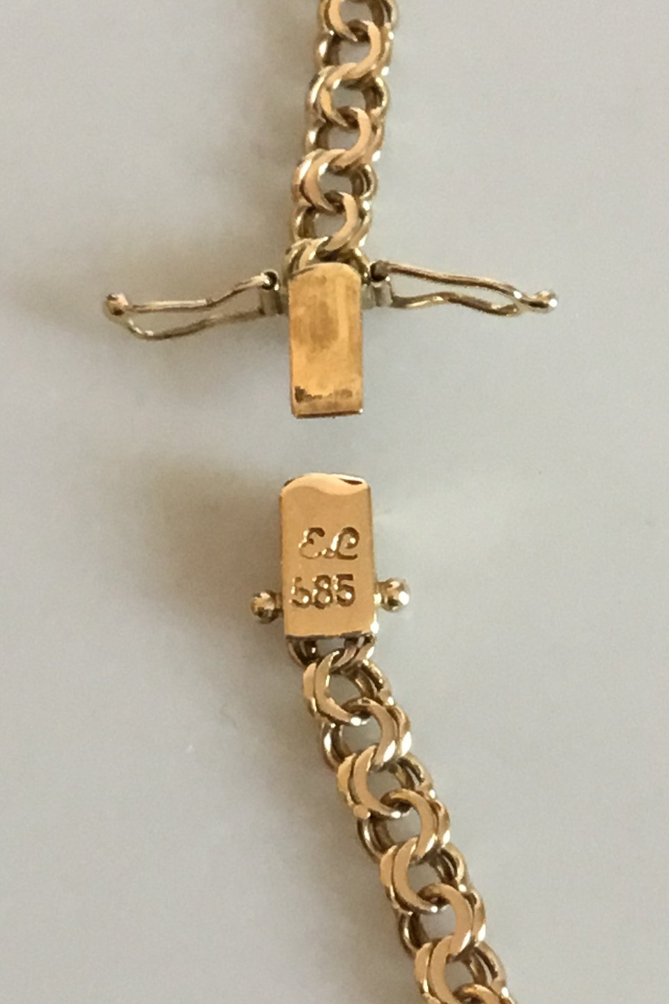 Bismarck Chain in 14 K. Gold. Measures 45.5 cm / 17 29/32 in. Width 4 mm - 7.5 mm. Weighs 16.1 g / 0.57 oz. Stamped EL 585