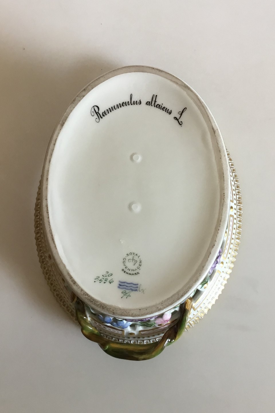 Royal Copenhagen Flora Danica Frugtskål No 20/3536. Måler 25,5 cm. x 19 cm x 8,5 cm 1. Sortering. Latinsk navn: "Ranunculus altaicus L."