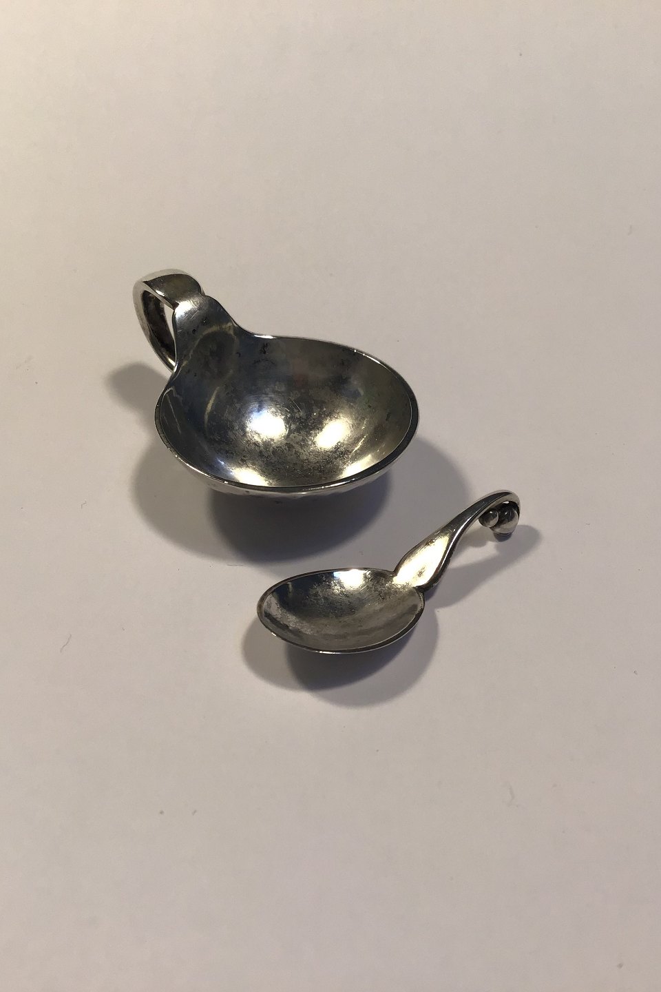 Georg Jensen Silver Salt Cellar with spoon No 110 Cellar 1930 3.5 cm x 5 cm/1.37" x 1.96" Spoon 1928 L 4 cm/1.57"