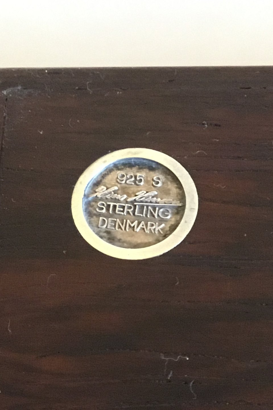 Hans Hansen Box of Rosewood with hinged Lid and Silver inlay. Measures 18 cm / 7 3/32 in. x 11 cm / 4 21/64 in. x 3.6 cm / 1 27/64 in.