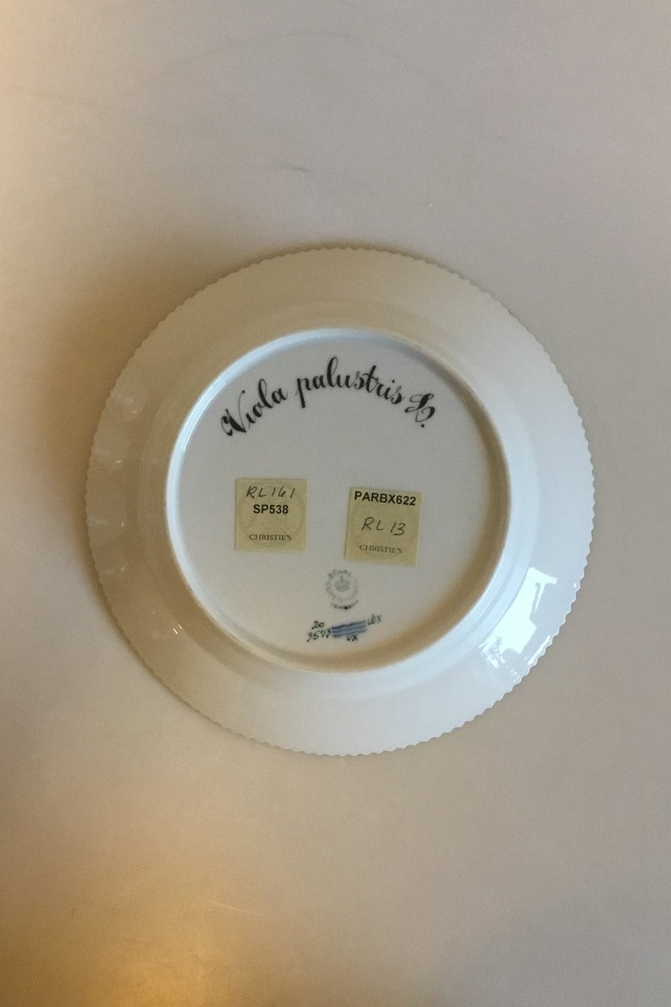 Royal Copenhagen Flora Danica Salad Plate No 20/3573. Latin name: Viola palustris L. Measures 19.2 cm / 7 9/16 in.