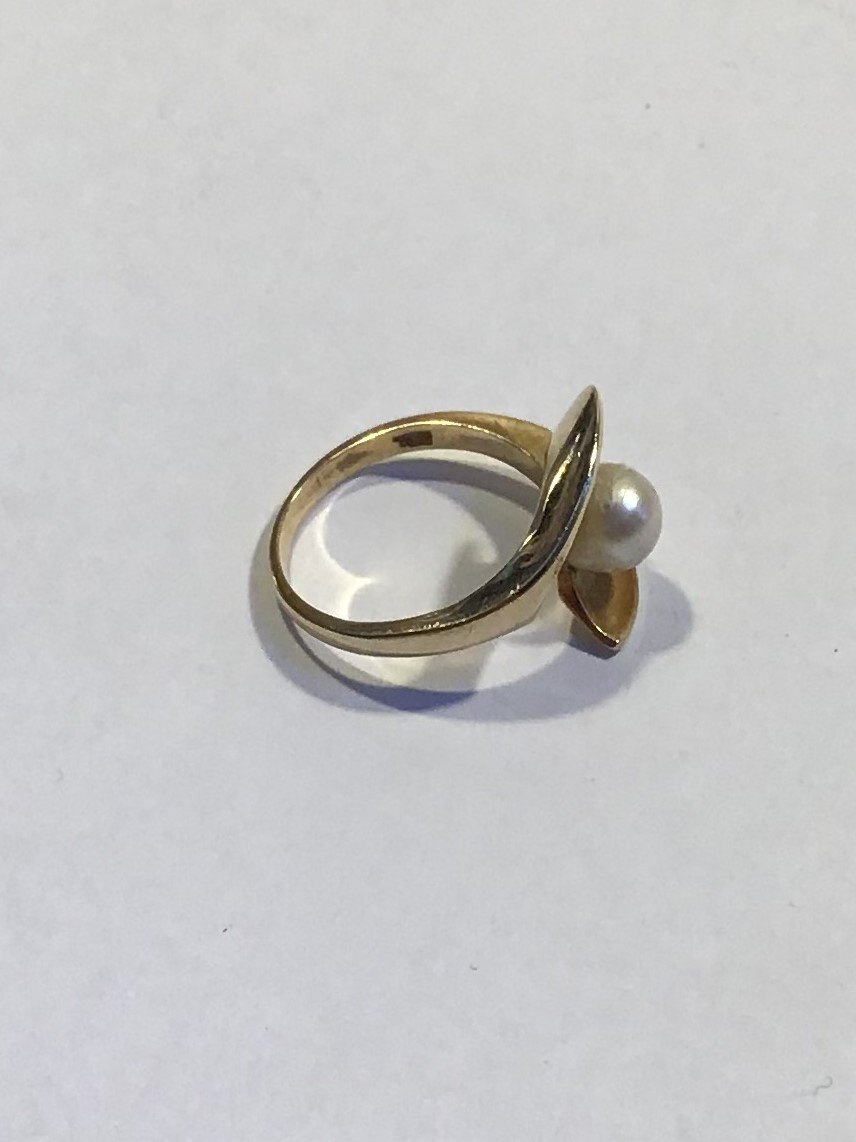 Edvard Berg 14K Gold Ring with Pearl Ring size 56 US 7½ Weight 4.9 gr /0.17 oz