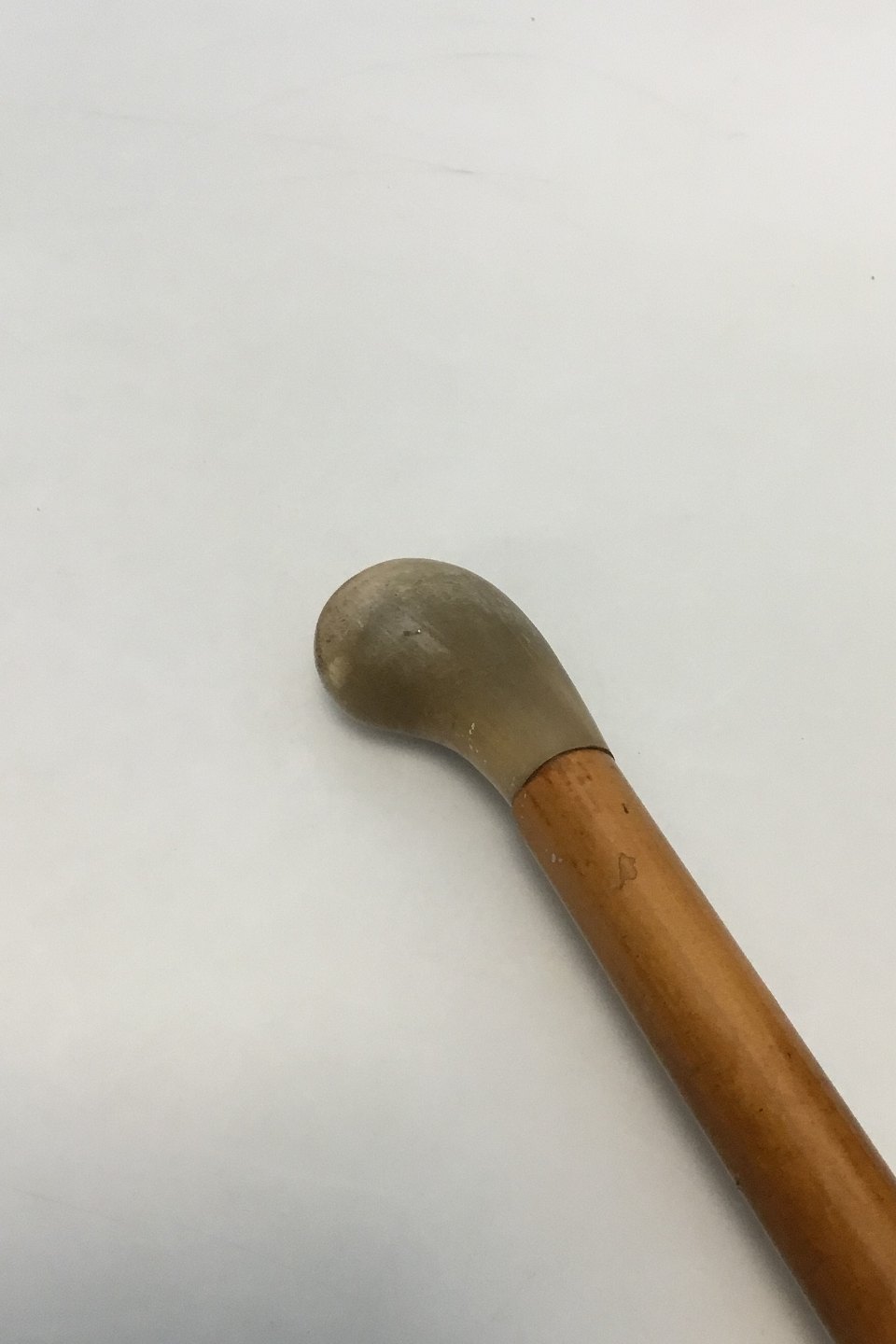 Antique elm wood walking stick with carved head of antler horn. Original ferule of antler horn. L: 90.5cm (35 5/8 in)