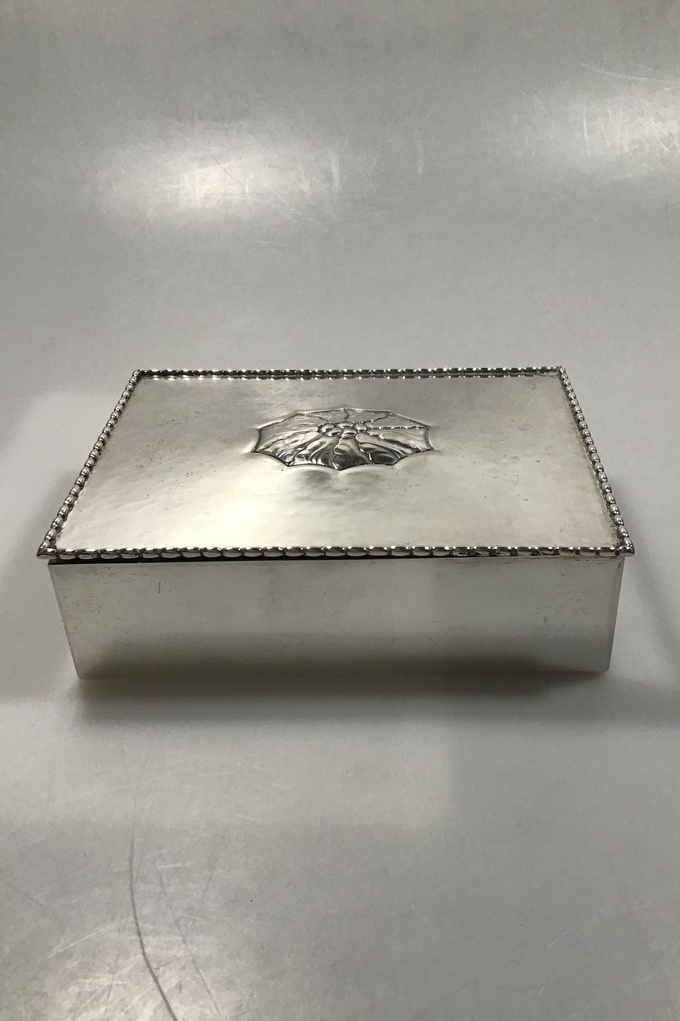 Georg Jensen Silver Cigar Box/Lidded Box wood lined No 195 1915-1927 Measures 18 cm x 13.5 cm x 5 cm(7 3/32 in x 5 5/16 in x 1 31/32 in) Weight 818 gr/ 28.9 oz Swedish import hallmarks