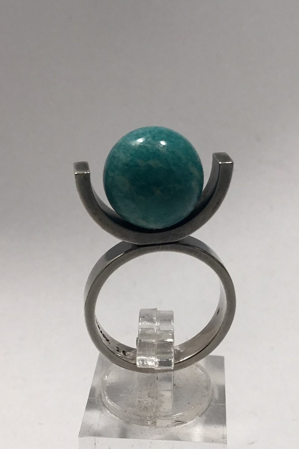 Hans Hansen Sterling Sølv Ring No 36 med Aventurin Ring Str 53 Vægt 7.7 gr