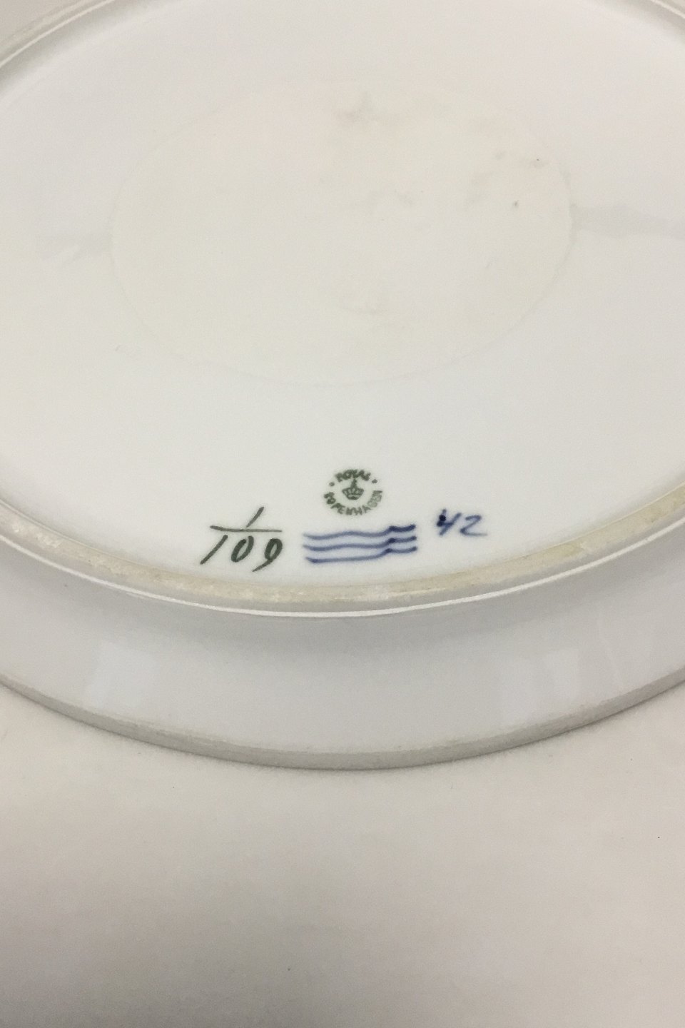 Royal Copenhagen Blue Fluted Plain Large round Dish No 109. The edge is sanded off. Measures 29.5 cm / 11 39/64 in.