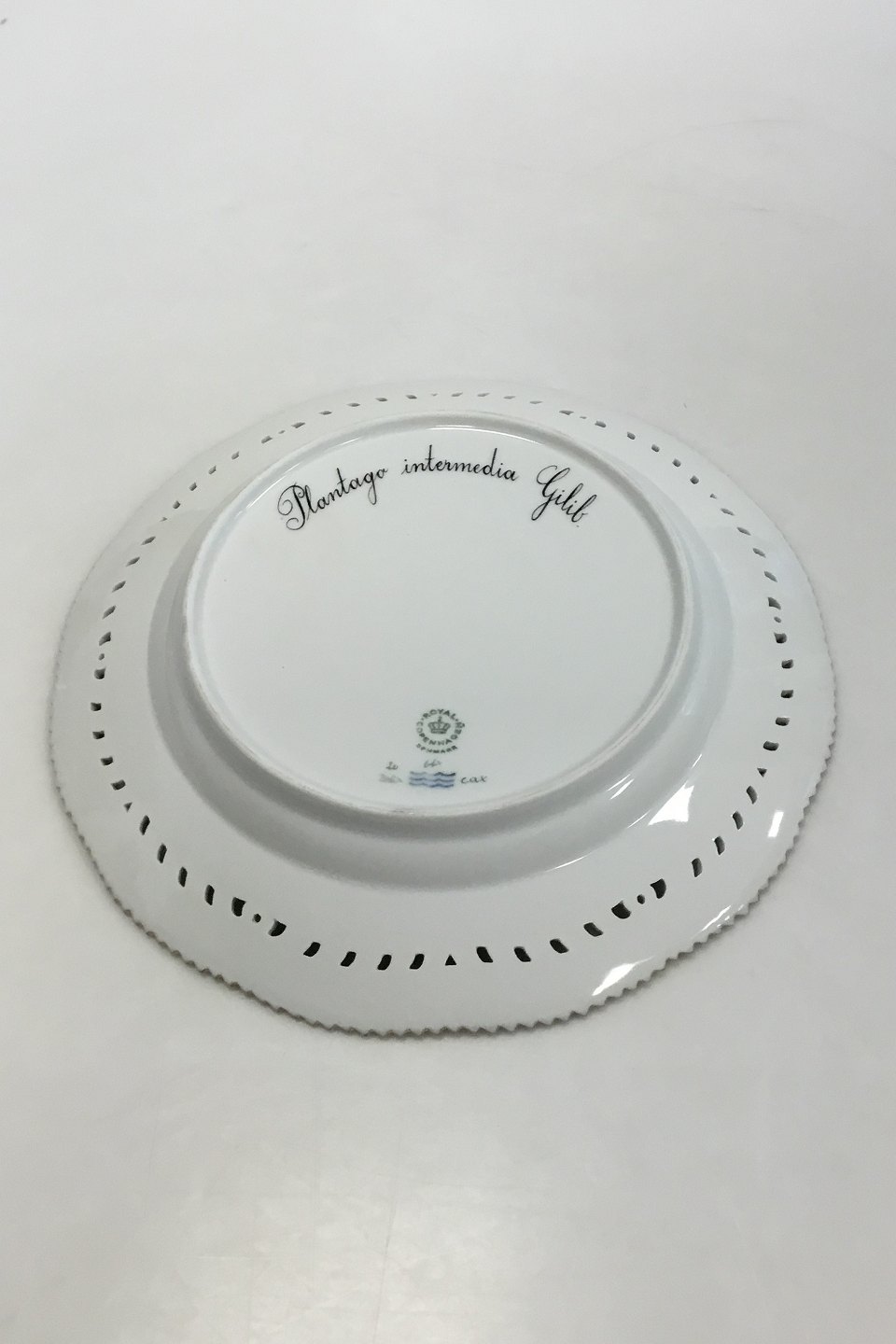 Royal Copenhagen Flora Danica Plate with pierced border No 20/3553. Latin name: Plantago intermedia Cjilib.. Måler 25.5 cm / 10 3/64 in.