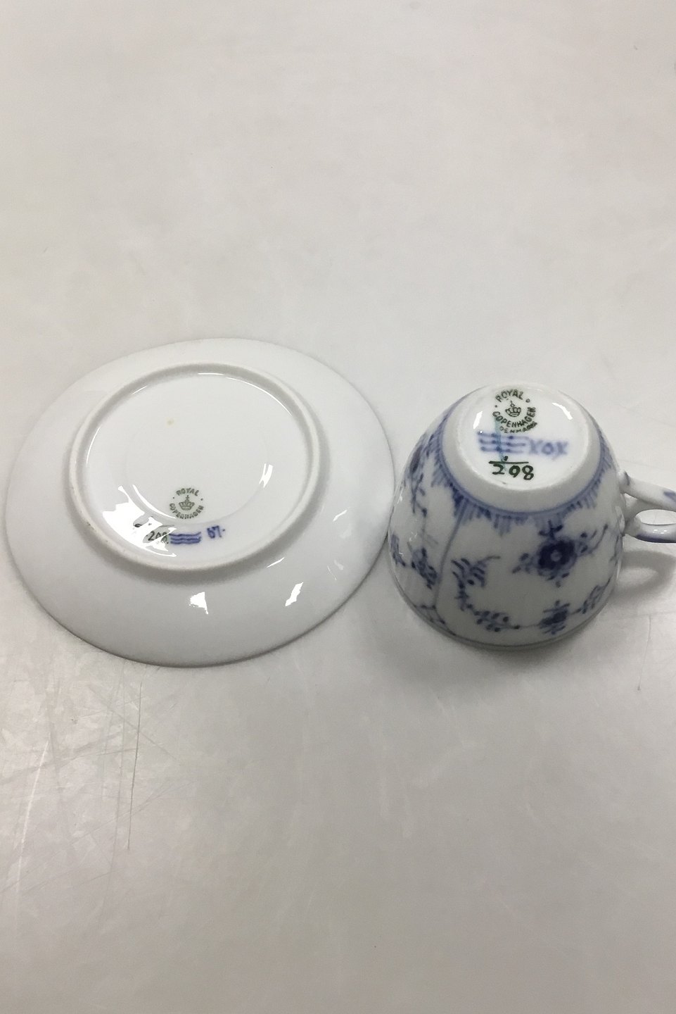 Royal Copenhagen Blue Fluted Plain Mocca Cup and Saucer No 298. Measures Cup: 5,3 cm x 6,5 cm dia. Saucer: 11 cm ( Cup: 2.09 in. x 2.56 in. dia. Saucer: 4.33 in. )