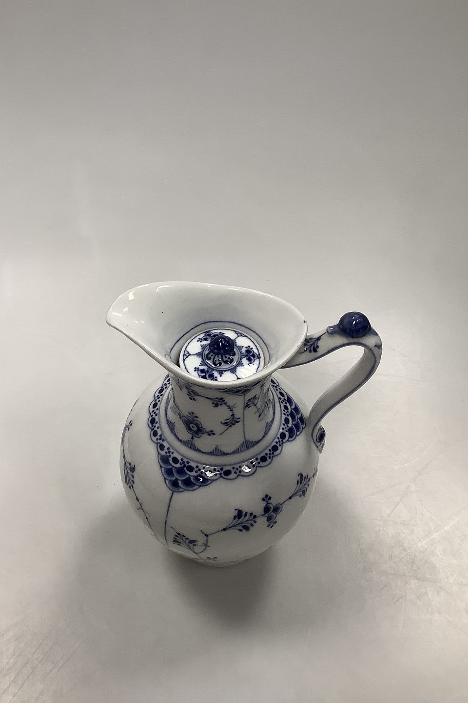 Royal Copenhagen Blue Fluted Half Lace Chocolate Jug No 722. Measures 23 cm / (9 1/16 in.). In good condition and marked as 1st quality