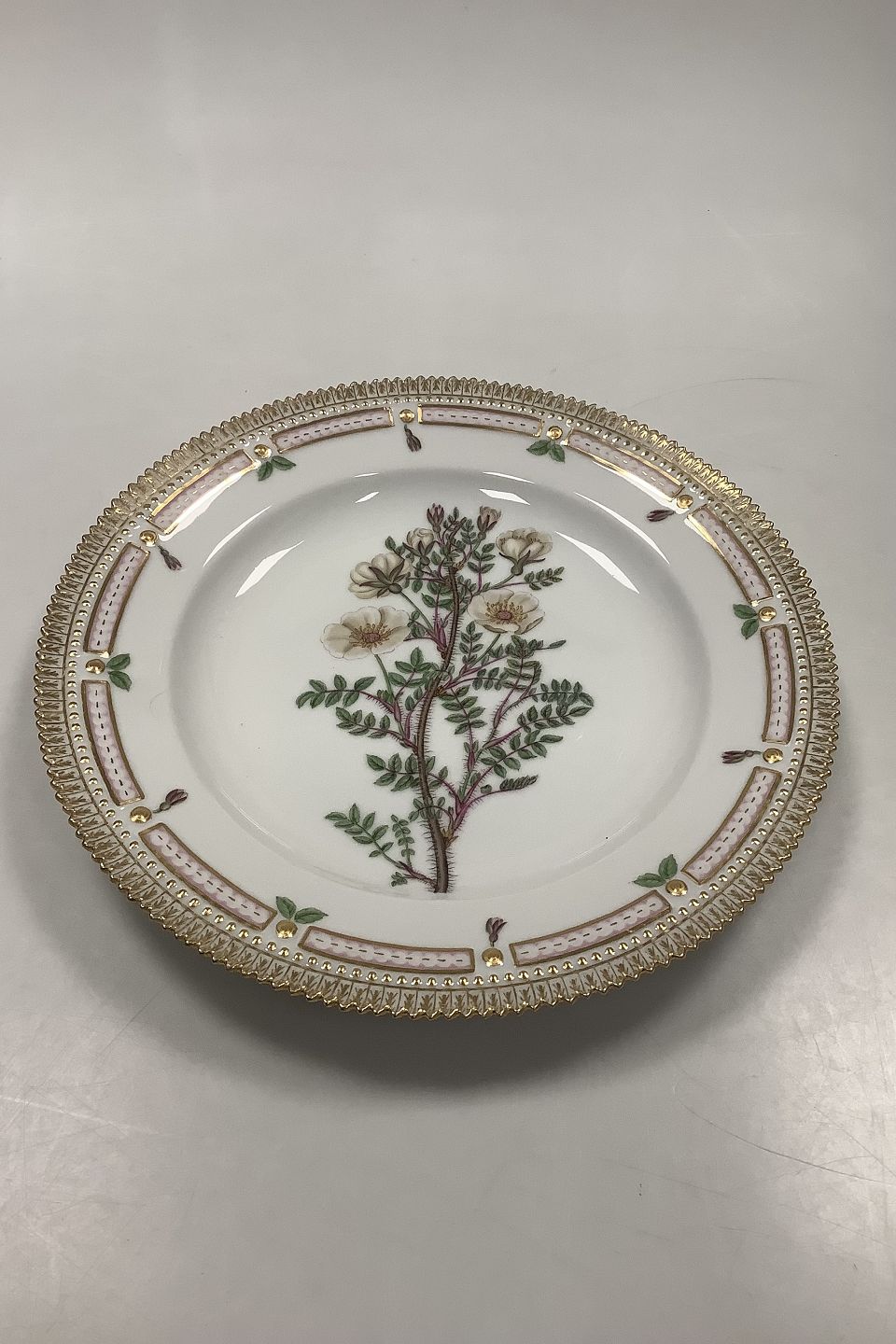 Royal Copenhagen Flora Danica Dinner Plate No. 624 (20/3549) Measures Diam 26 cm. (10.23 inch) 1. Quality. Latin Name: Rosa impinelleafolia L.