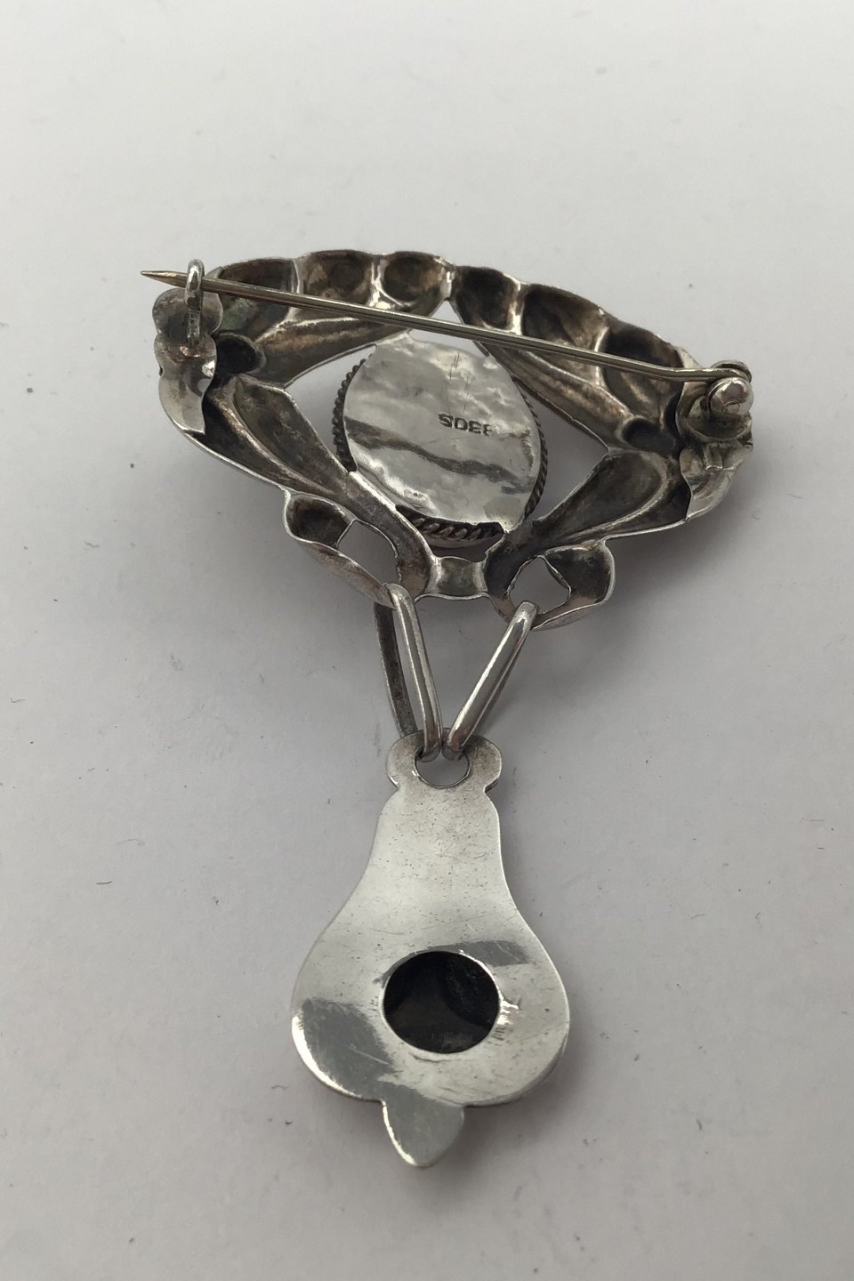 Danish Silver Art Nouveau Brooch with Amber Measures 7,2 cm x 4.5 cm (2.83 inch x 1.77 inch) Weight 8.4 gr (0.30 oz)