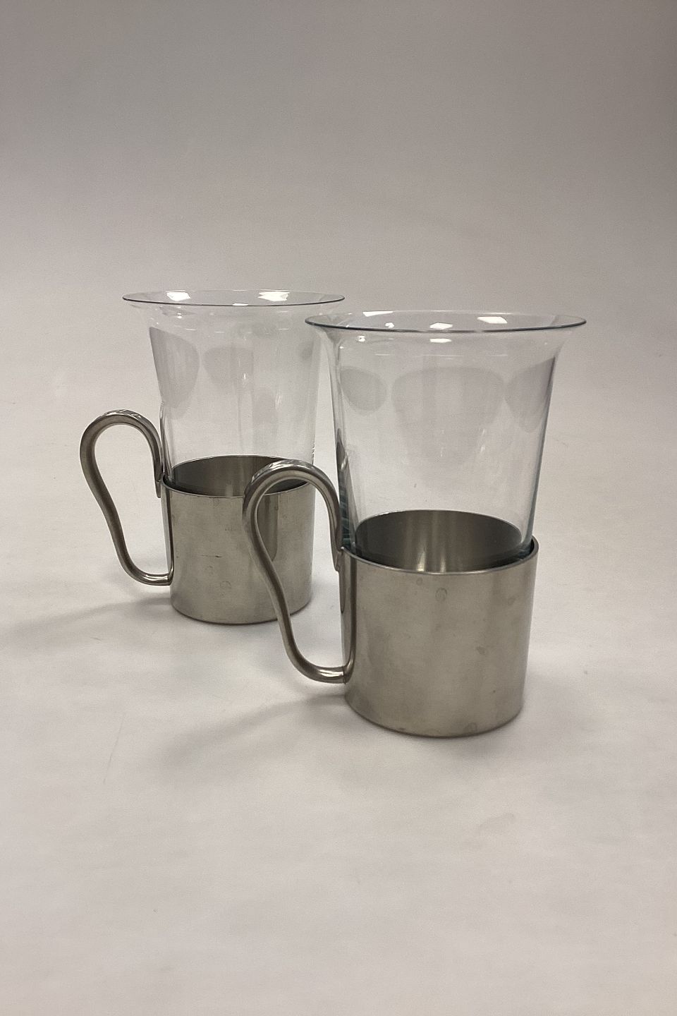 Just Andersen/Holmegaard A pair of Pewter Mugs with Glass No. 2504. Measures 13 cm / 5.11 in.