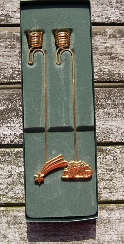 Georg Jensen Denmark Christmas decorations. Pair of candle holders in gilded brass, ...