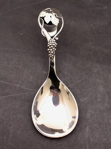 Silver serving spoon with grape motif