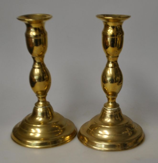 Pair of Danish Empire candlesticks in brass, circa 1820.