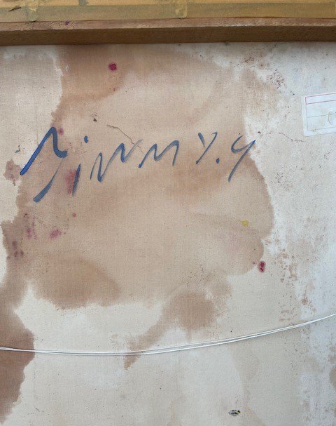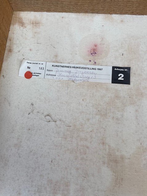 "Komposition" Olie maleri på lærred, udstillet i 1987 på "Den frie udstilling" Monteret i grå ramme.