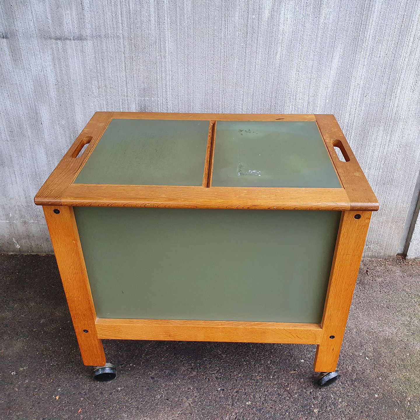 Bartable in oa and green laminate. Unknown designer/maker .Good condition and quality.