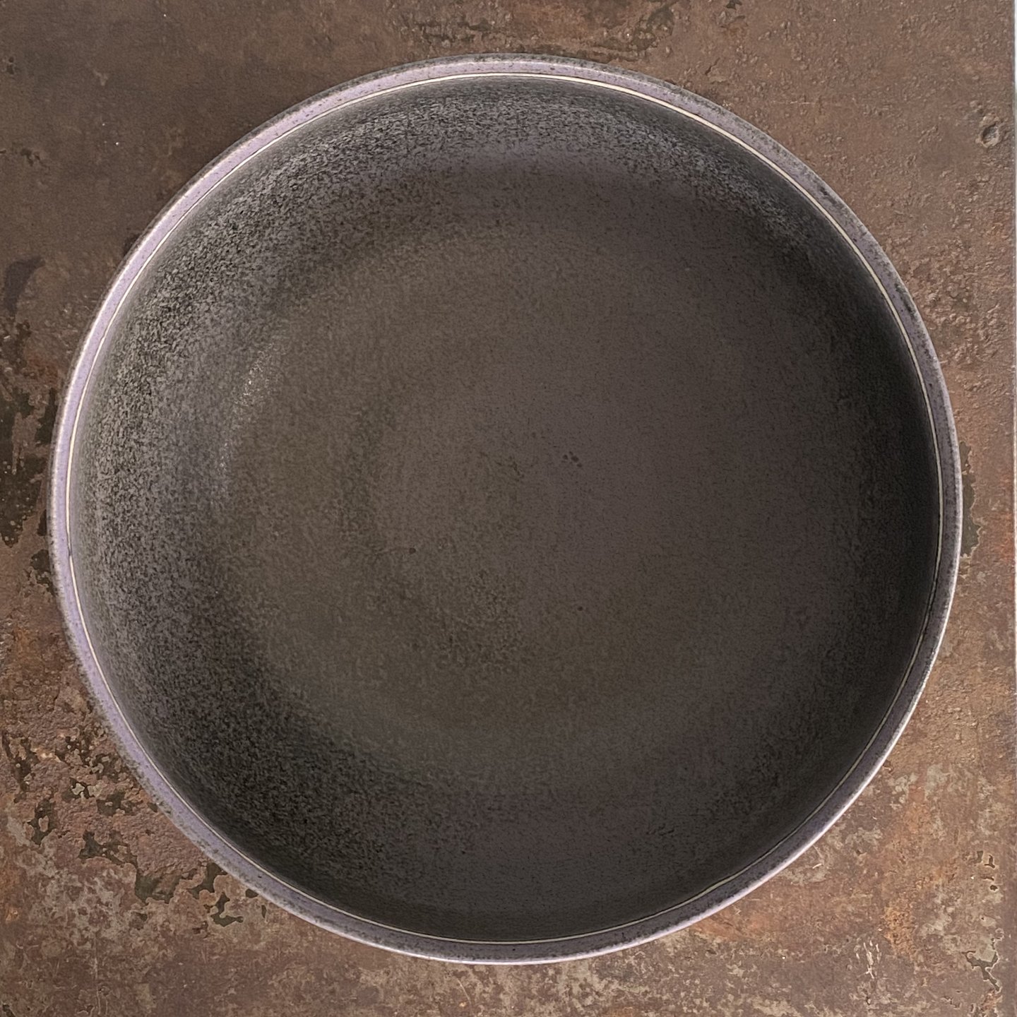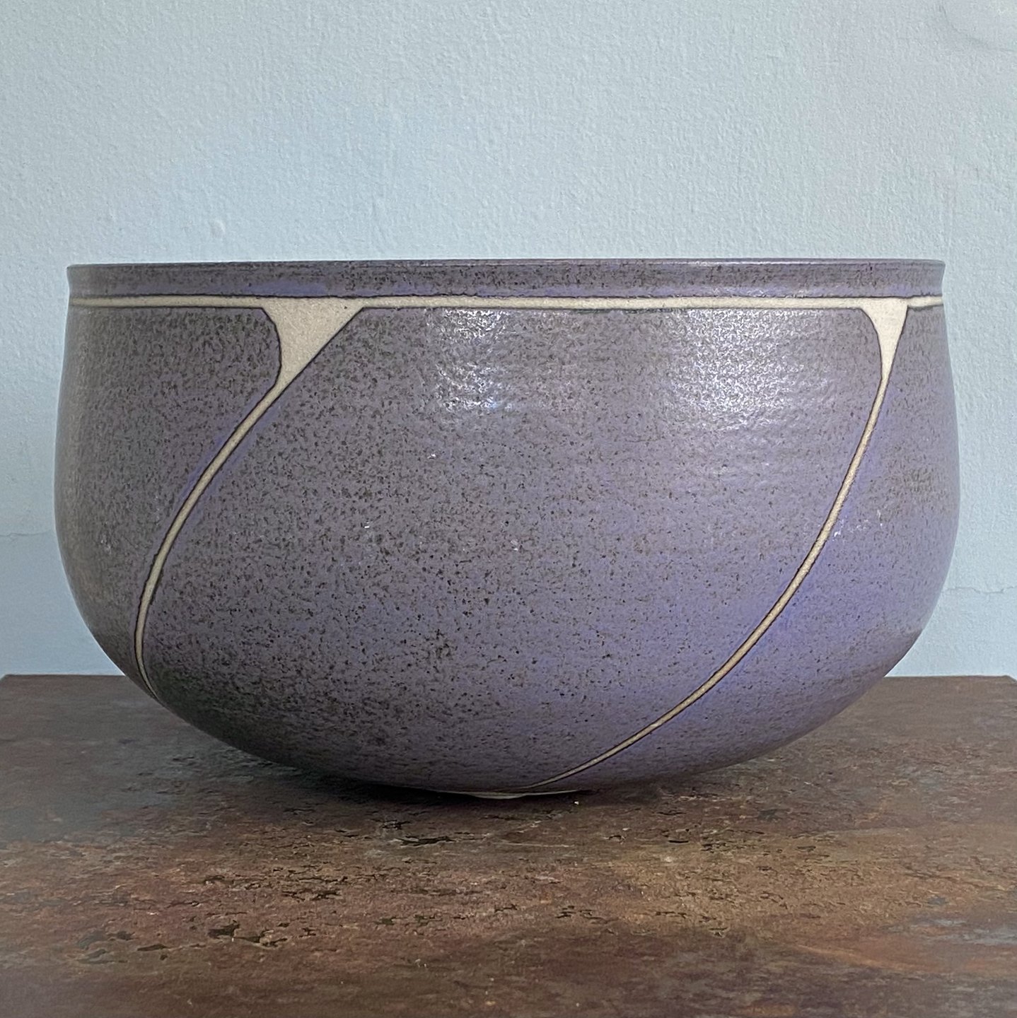 Large bowl of stoneware decorated with purple glaze. H. 16 cm. Ų 28 cm. Signed with monogram R?