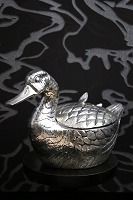 Delicious Italian ice bucket designed by Mauro Manetti in the shape of a duck in silver-plated pewter from the 60s. . .