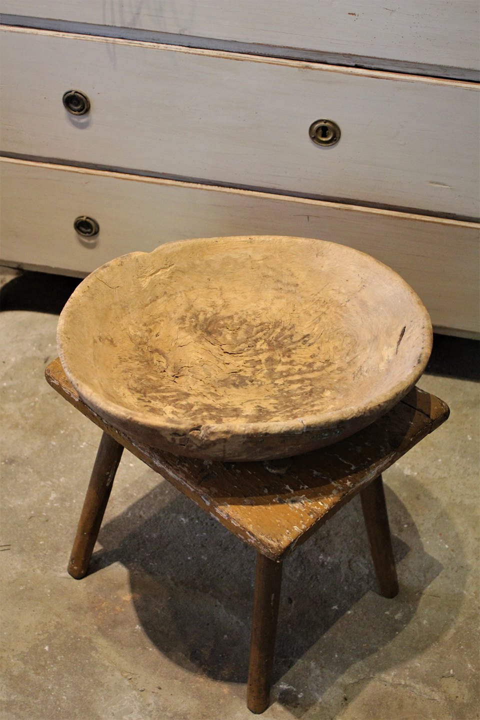 Gammel svensk oval 1800 skål i træ med original farve og en super fin patina. H:7cm. Ø:40x33.
