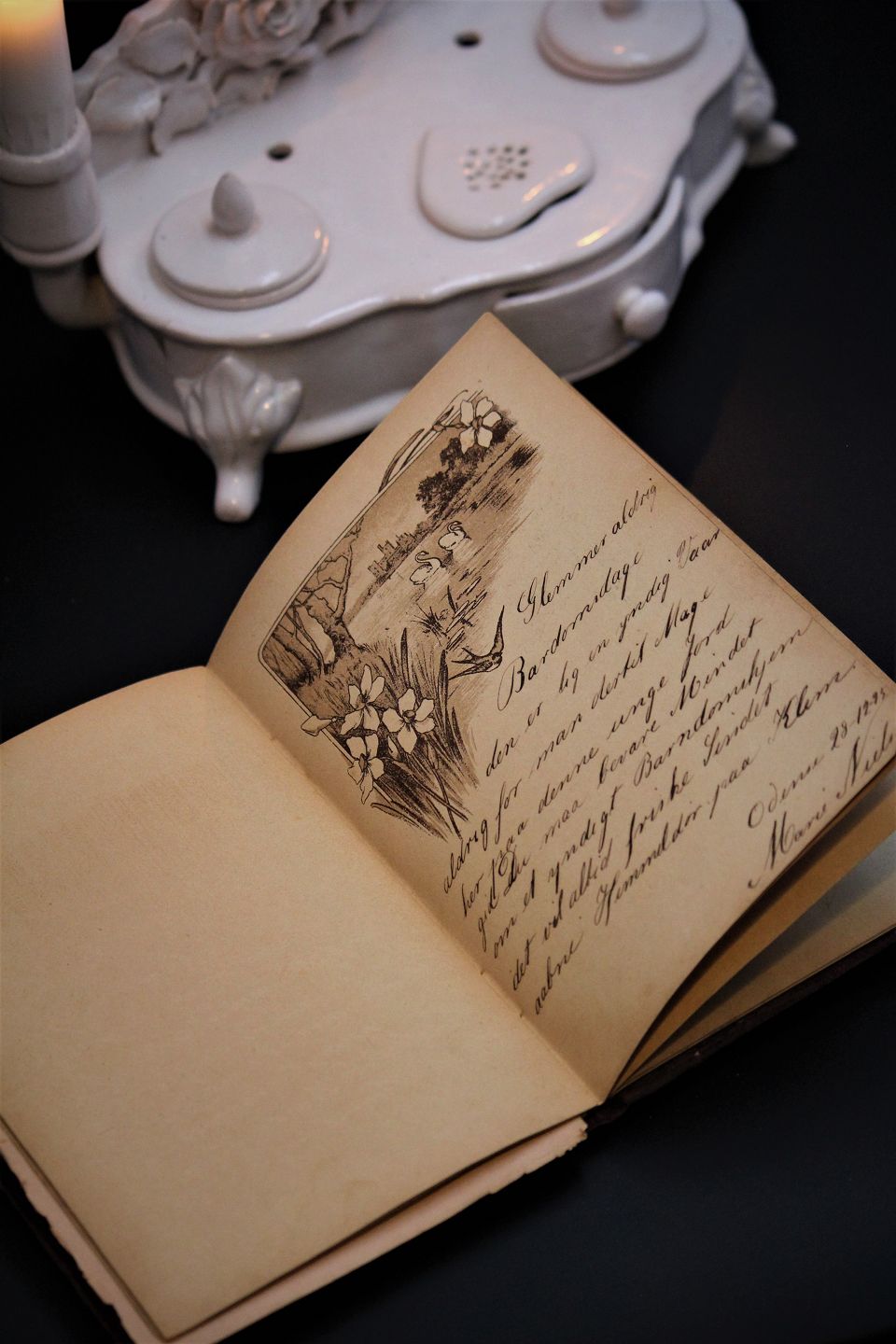 Fine, old poetry book from the year 1894 with small handwritten poems. 18x12cm. Item number: Poesi bog fra 1894