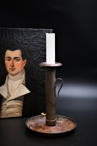 Fransk 1800 tals kammerlysestage i metal med en super fin patina. H:17,5cm. Emne nummer: Kammerstage nr.2