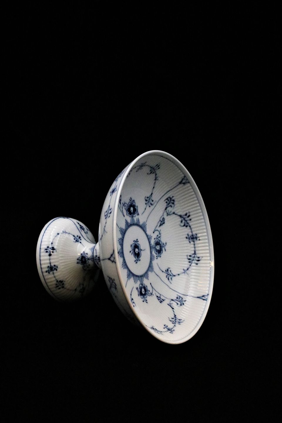 Royal Copenhagen Blue Fluted Plain salad plate on a high stand.