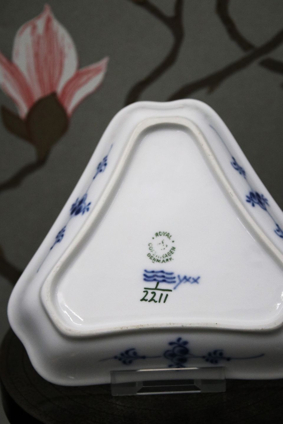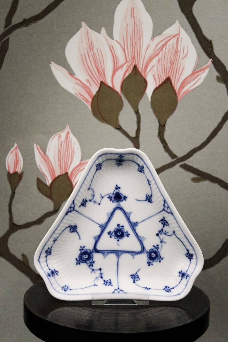 Royal Copenhagen Musselmalet Riflet " 3 kantet " lille fad / skål.