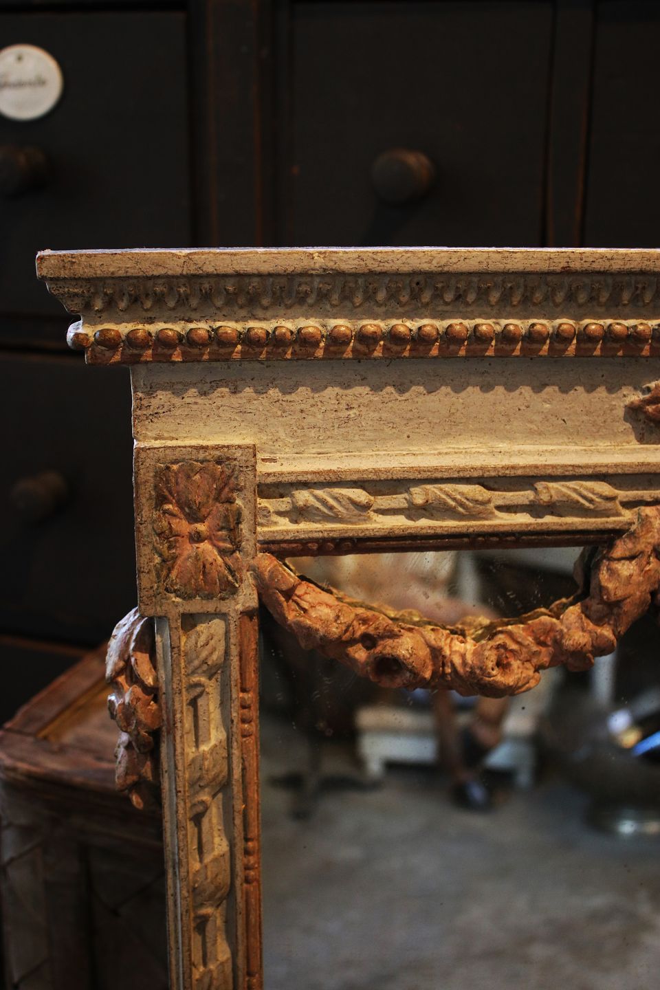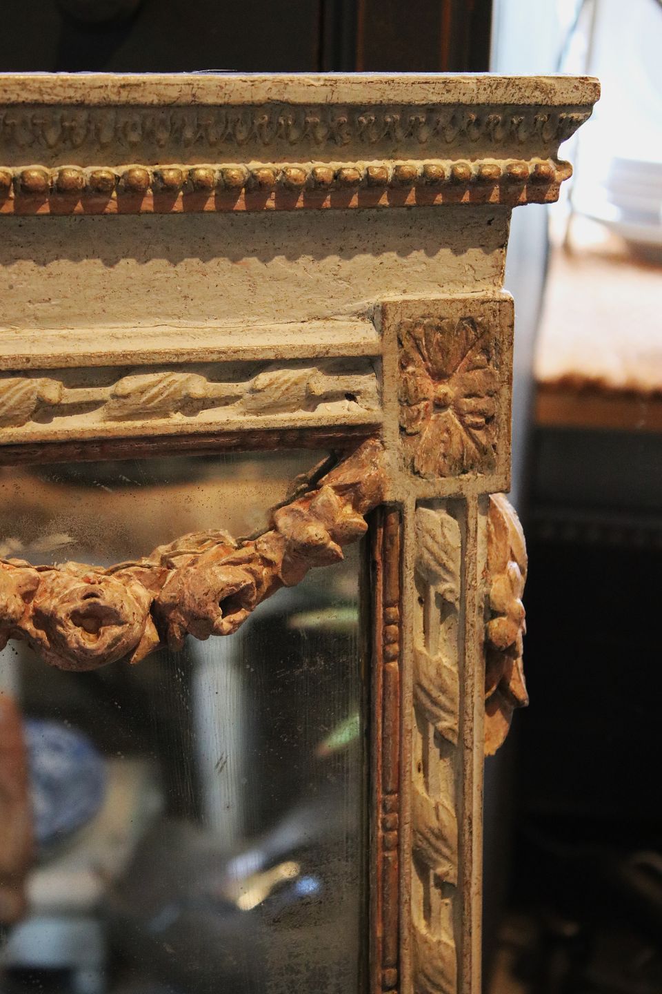 Swedish mirror in Gustavian style from around 1840 with fine decorated frame in delicate gray / green color and with original mirror glass.