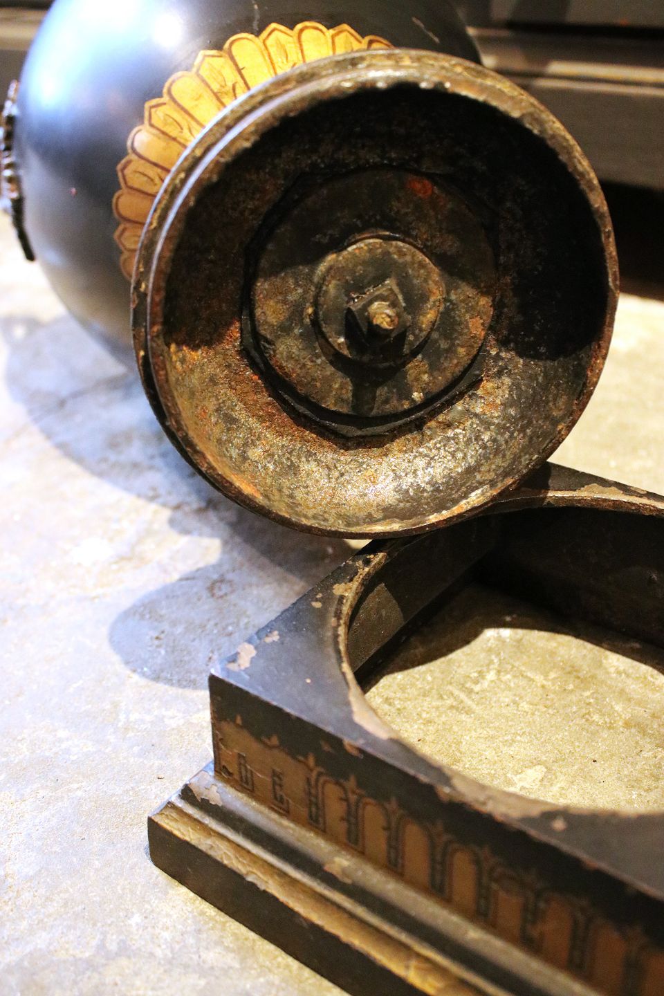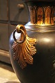 LARGE decorative 19th century iron vase with hand-painted floral motif and gold decorations and with a very fine patina.