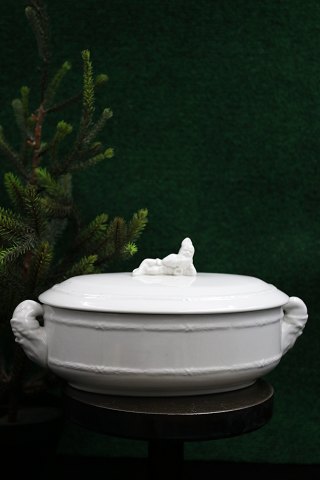 Old Swedish oval Christmas terrine in white porcelain with a lying elf on the lid...