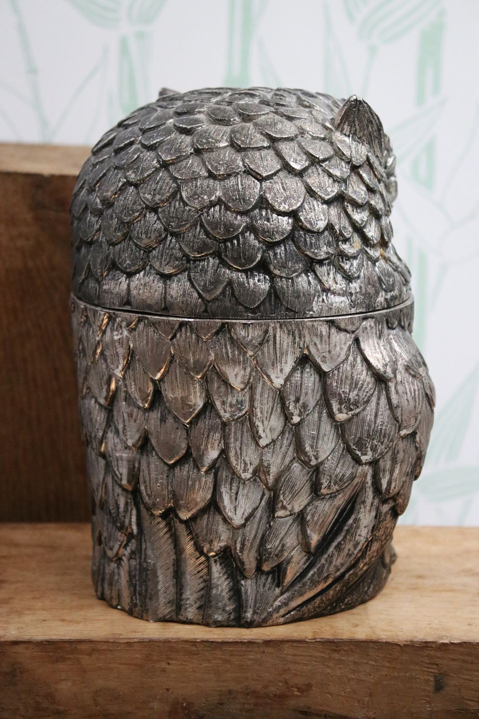 Delicious Italian ice cream bucket designed by Mauro Manetti in the shape of an owl silver-plated pewter from the 60s...