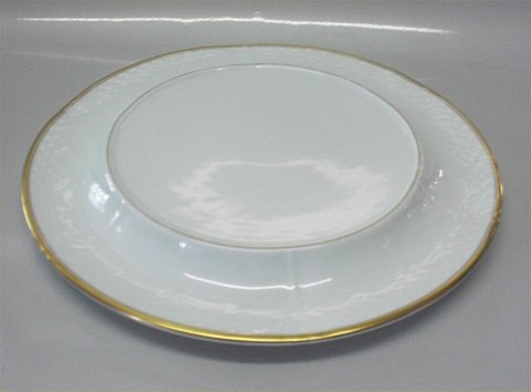 Beskrivelse: Bing & Grøndahl Hartmann 003 Fod til terrin 31,5 cm Hvidt porcelæn med dobbelguldkant. Bing & Groendahl I hel og fin stand