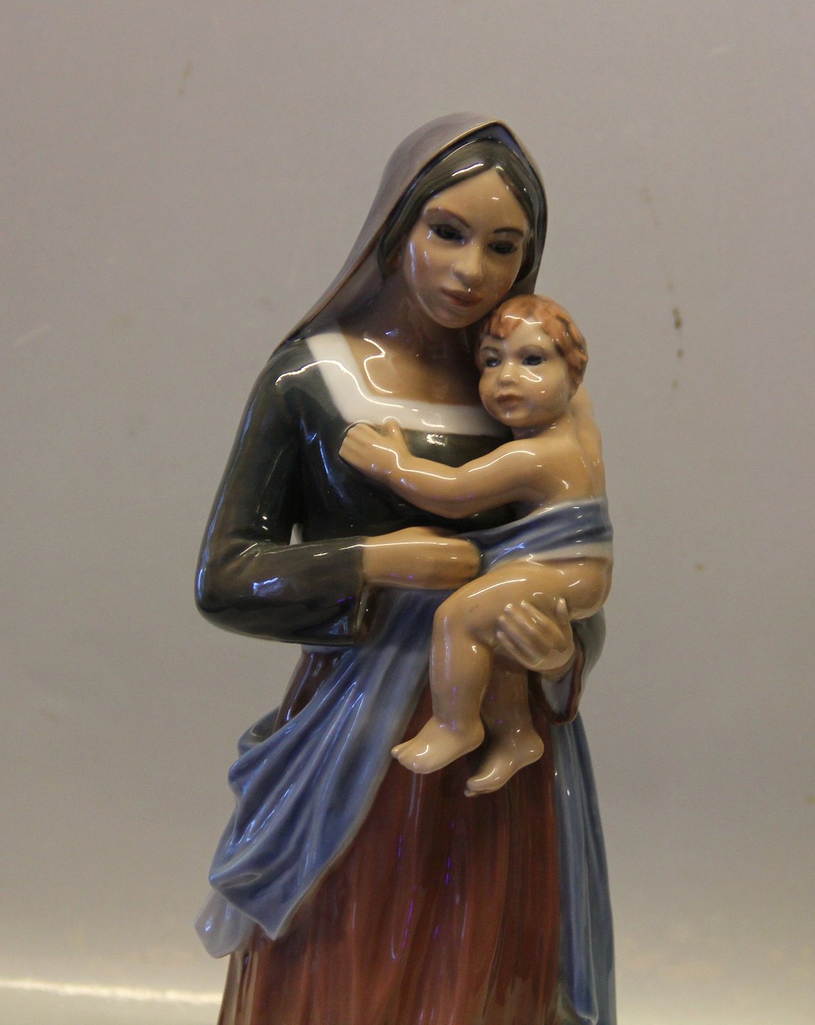 Beskrivelse: Dahl Jensen 1269 Madonna med barn 32 cm. Mærket med kongelig krone og DJ Copenhagen i fin stand. 1269 Madonna and Child (DJ) 32 cm