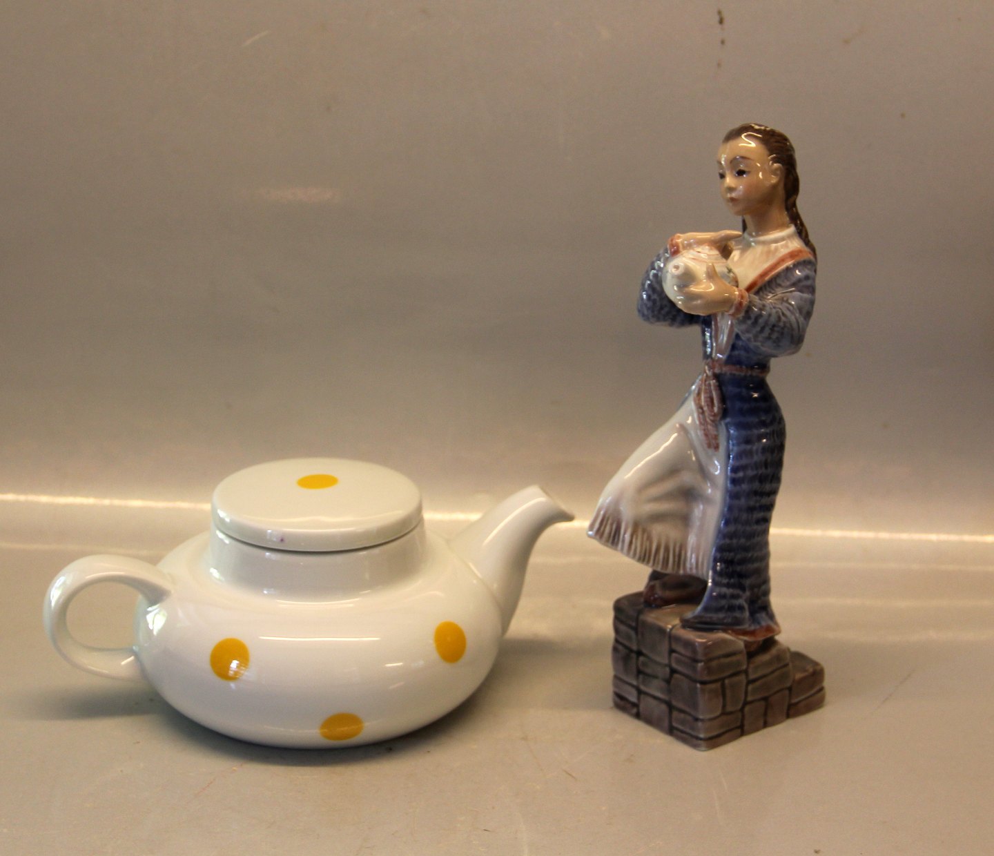 Beskrivelse: Dahl Jensen 1307 Tepige 22 cm (Linda Rørup). Mærket med kongelig krone og DJ Copenhagen i hel og fin stand.