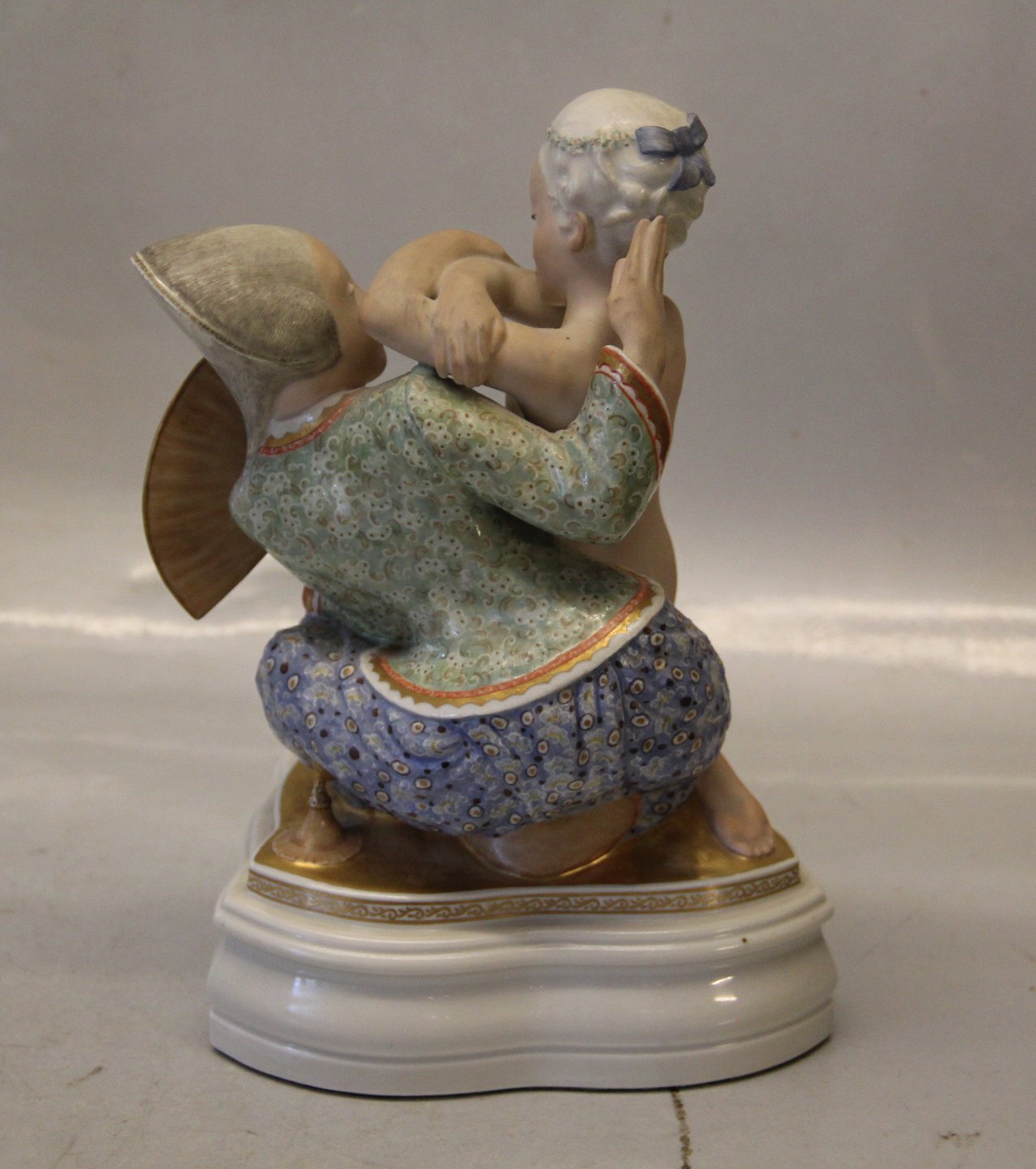 Beskrivelse: Kgl. figur fra Royal Copenhagen 1586 Kgl. "Eventyr II" GH 23 cm Gerhard Henning 1913 I hel og fin stand Juliane Marie mærket Over glasur dekoreret Fairy Tale
