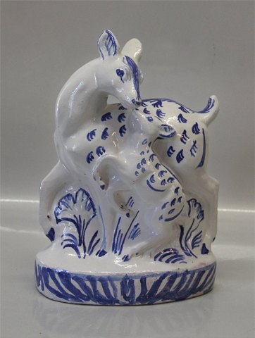 Description: Kahler Deer with fawn with and blue decoration 18 x 20 cm Knud Kyhn 13/12 1923 KK Stoneware. In nice and mint condition