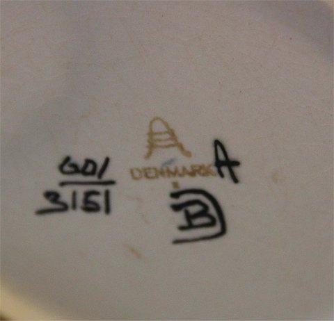 Beskrivelse: Royal Copenhagen Aluminia fajance 601-3151 Tekande 3/4 L Berte Jesen 1962 Anette, Minimalt skår på tud og skåret låg