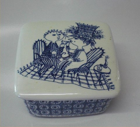 Bjørn Wiinblad Nymølle 3184-337 Blå, box med låg 9.5 x 9.5 x 5 cm, Cigarette