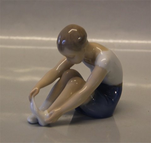Description: Bing and Grondahl B&G 2199 Boy taking off sock 9 x 10 cm Marked with the three Royal Towers of Copenhagen. Bing & Groendahl In mint and nice condition Claire Weiss 1934