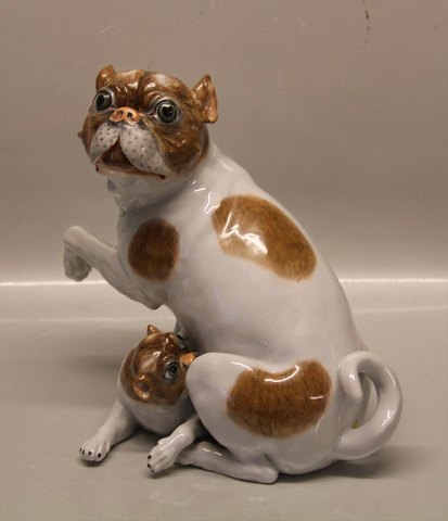 Antik Bulldog med hvalp 24 x 26 cm Carl Thieme