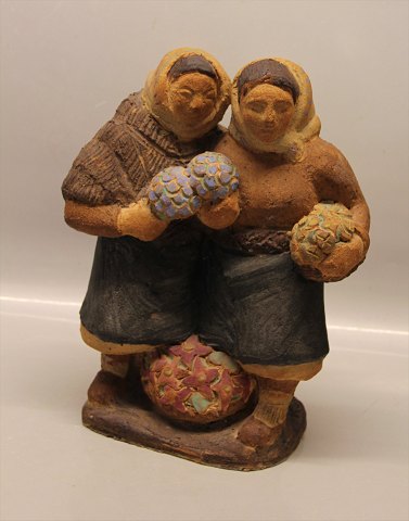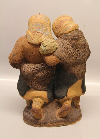 Dansk Stentøj B&G 1980 Unika Skulptur Tokvinder med blomster ca 26 x 31 cm Signeret K. Otto