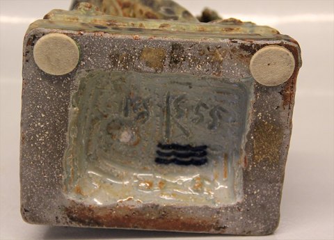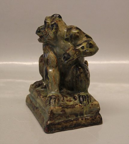 Description: Royal Copenhagen Stoneware Unique - Sitting Monkey on squarre base 18 x 12 cm Signed Knud Kyhn 1955. In nice and mint condition