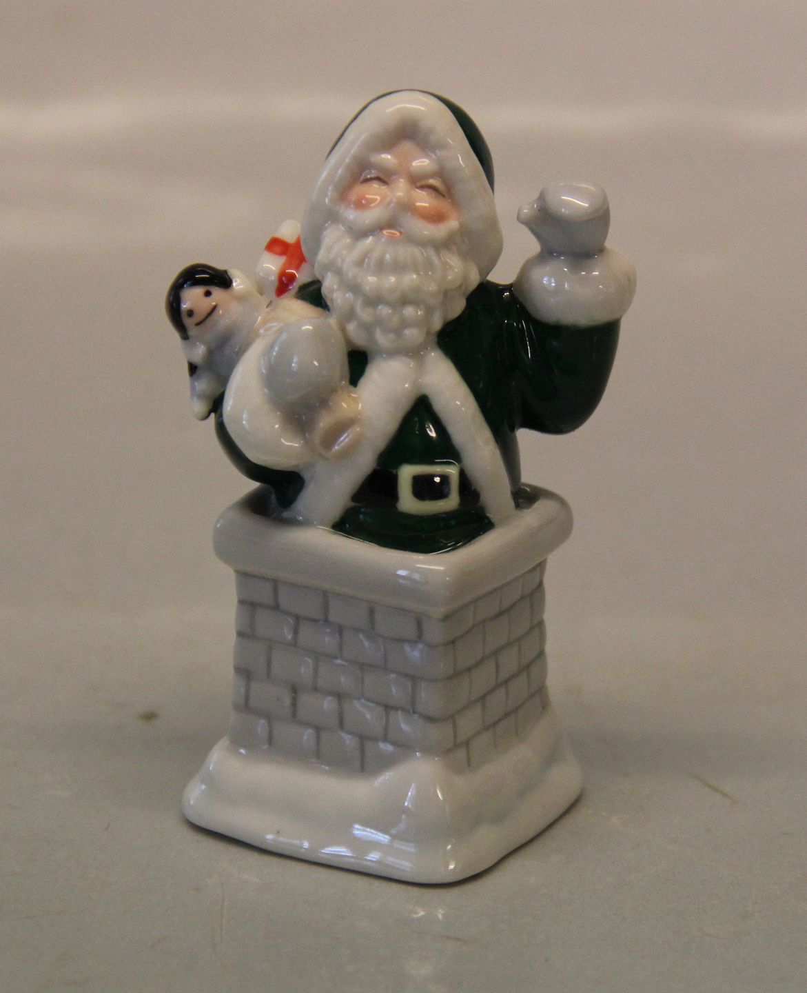 Beskrivelse: Kgl. figur fra Royal Copenhagen 0770 Kgl. Årets Julemand i Skorstenen 8 cm 2004, grøn - special edition (1249770) I hel og fin stand
