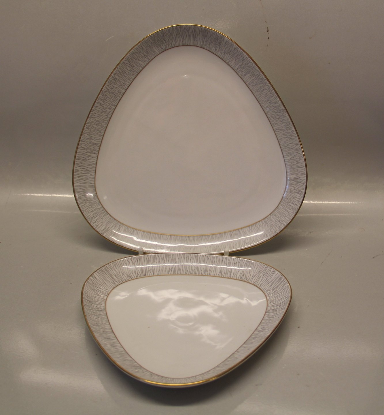 Triangular, dish, large 26 cm KohINoor Königl. pr. Tettau German Dinnerware with gold rim
