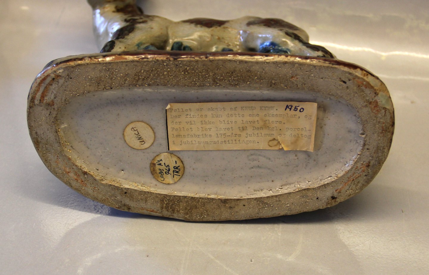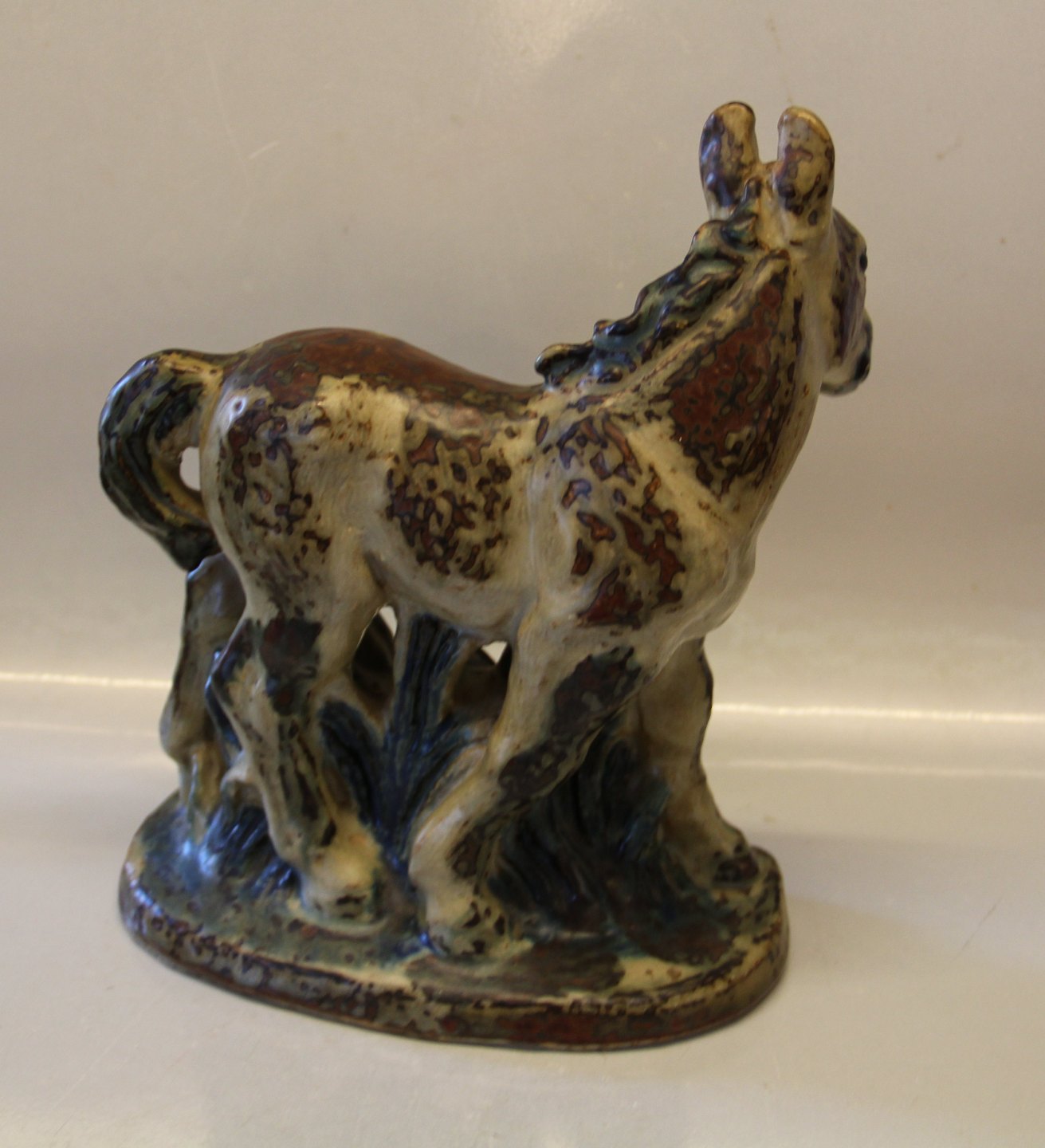 Description: Royal Copenhagen Stoneware Foal on base 27.5 x ca 24 cm 1953 Unique Knud Kyhn. In nice and mint condition