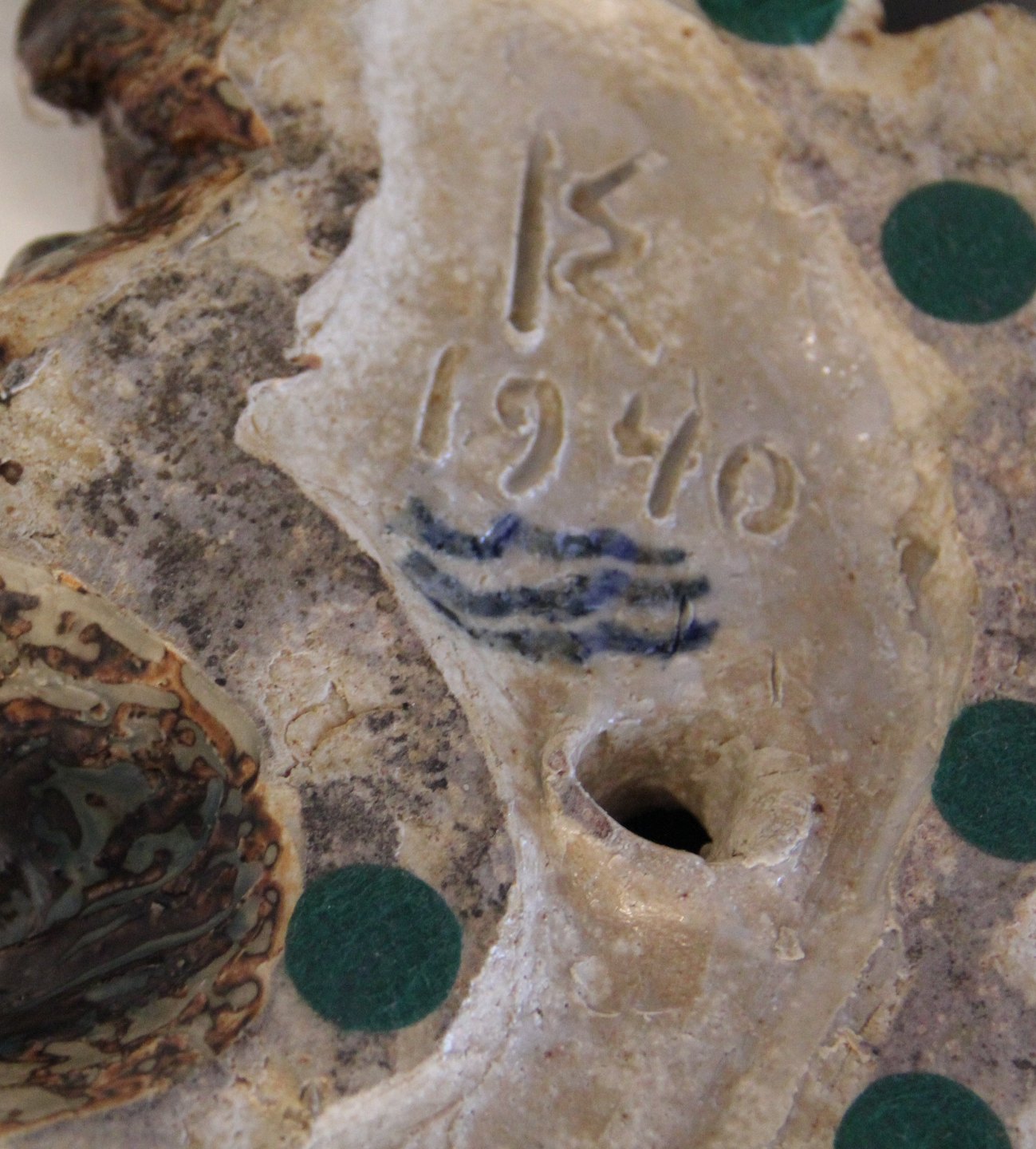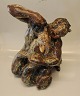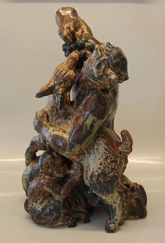 Description: Royal Copenhagen Stoneware Faun with goat and young ca 43 x 30 cm (15 kg) Knud Kyhn 1940. Sung Glaze In nice and mint condition