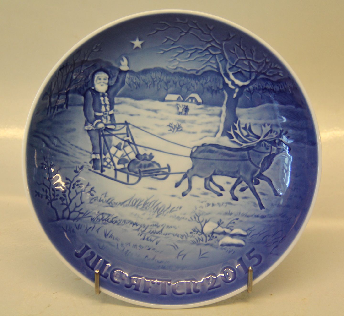Beskrivelse: Bing & Grøndahl Juleplatte 2015, design Jørgen Nielsen, Julemandens Gaver. I fin og hel stand.