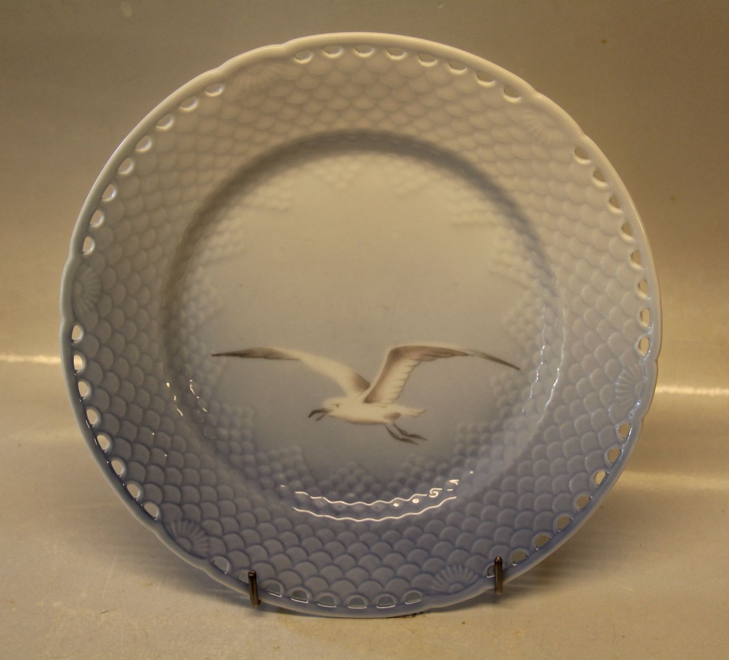 026.5 Tallerken 21,5 cm (326.5) Gennermbrudt kant Bing & Grøndahl Mågestel uden guldkant. I hel og fin stand